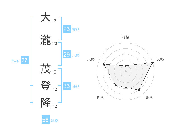 大瀧 茂登隆さんを姓名の画数から五運を鑑定