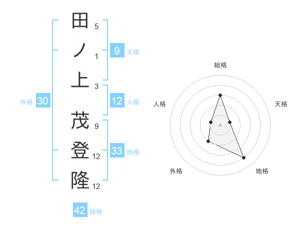 田ノ上 茂登隆さんを姓名の画数から五運を鑑定