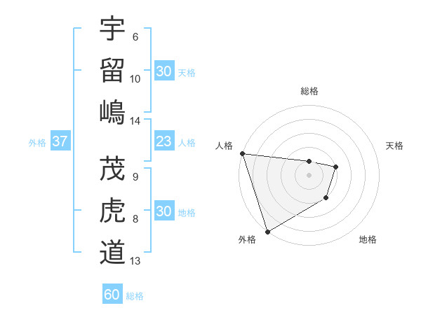 宇留嶋 茂虎道さんの外格は37画の5点!