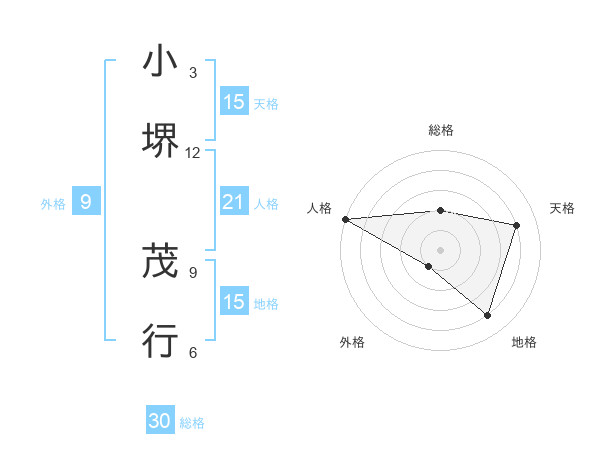 小堺 茂行さんを姓名の画数から五運を鑑定