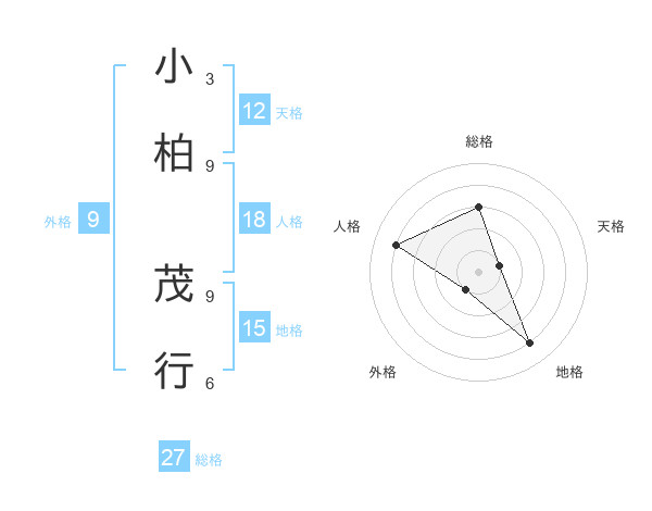 小柏 茂行さんの総格は27画の3点!