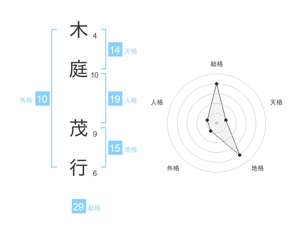 木庭 茂行さんの総格は29画の4点!
