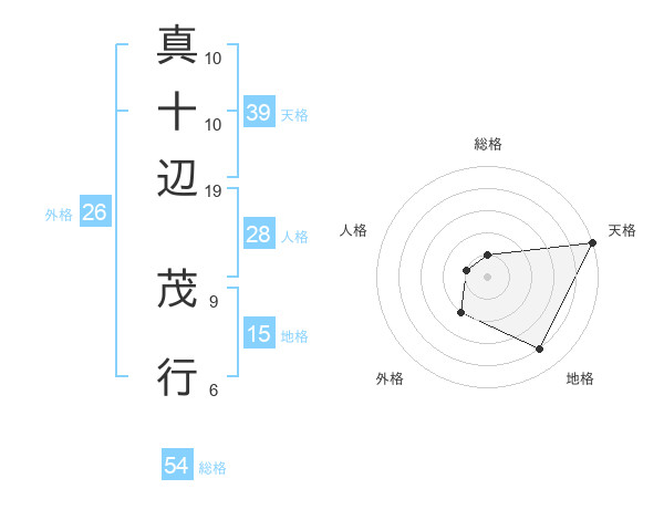真十辺 茂行さんの天格は39画の5点!