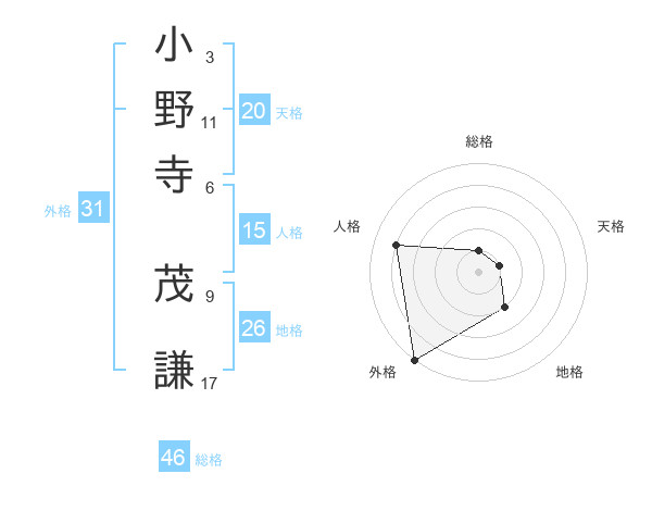 小野寺 茂謙さんを姓名の画数から五運を鑑定