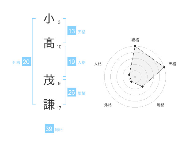 小髙 茂謙さんの総格は39画の5点!