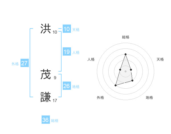 洪 茂謙さんを姓名の画数から五運を鑑定