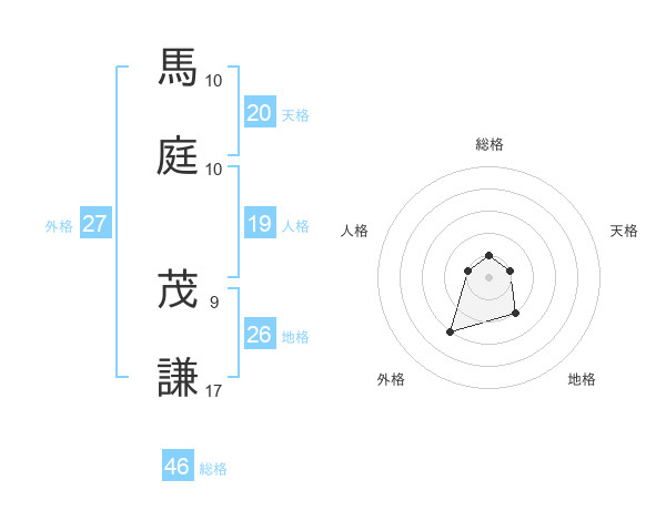 馬庭 茂謙さんの総格は46画の1点!