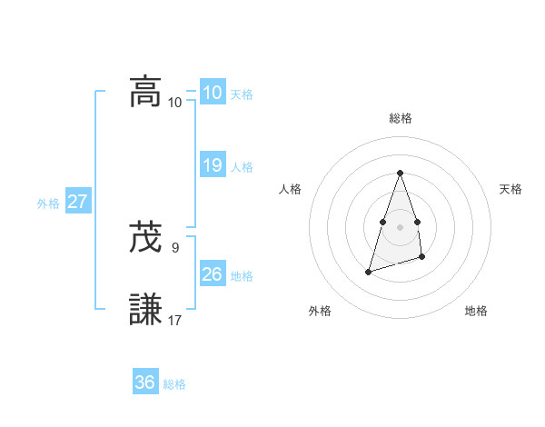 高 茂謙さんの総格は36画の3点!