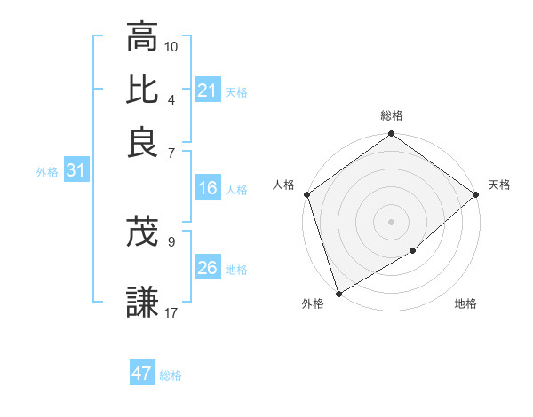 高比良 茂謙さんを姓名の画数から五運を鑑定
