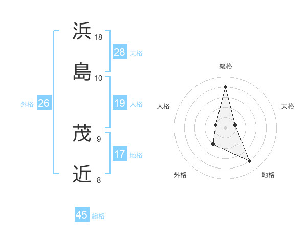 浜島 茂近さんを姓名の画数から五運を鑑定