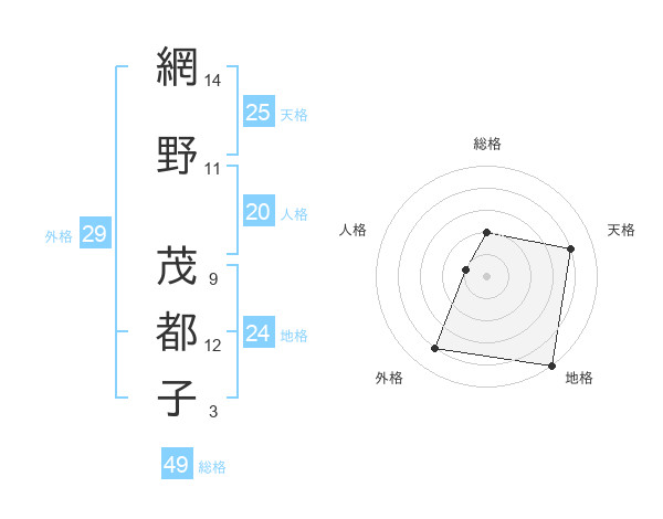 網野 茂都子さんを姓名の画数から五運を鑑定