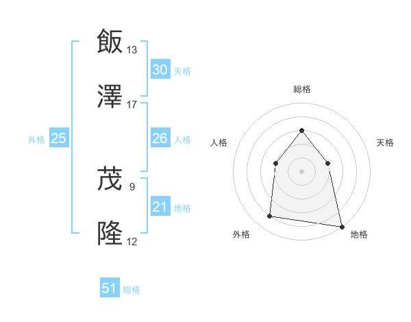 飯澤 茂隆さんの総格は51画の3点!
