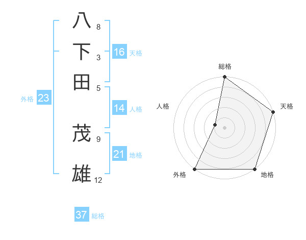 八下田 茂雄さんを姓名の画数から五運を鑑定