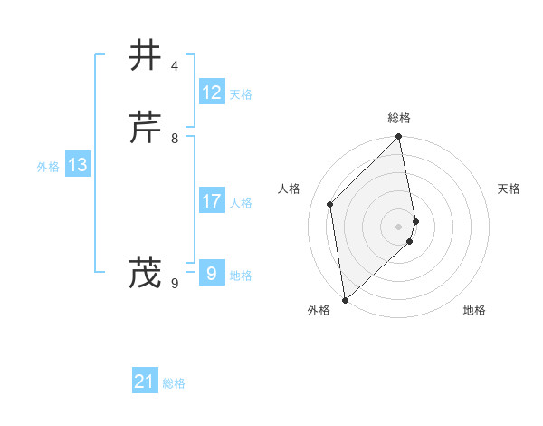 井芹 茂さんの外格は13画の5点!