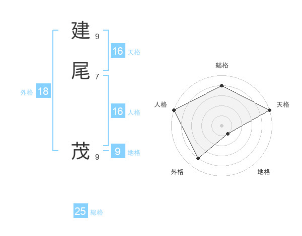 建尾 茂さんの総格は25画の4点!