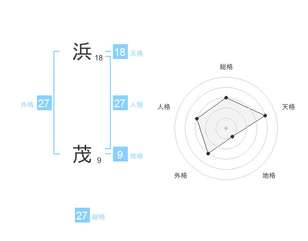 浜 茂さんの総格は27画の3点!