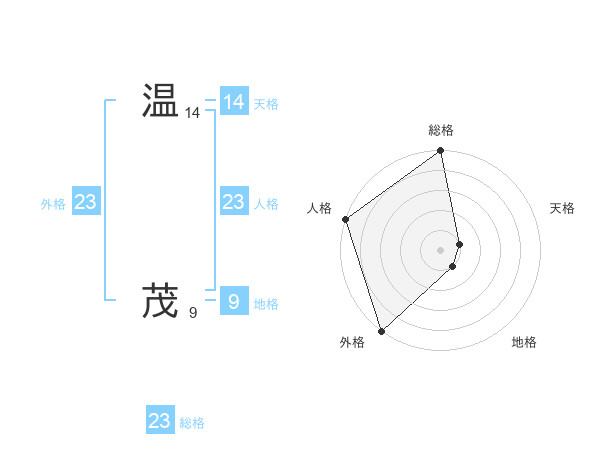 温 茂さんの総格は23画の5点!