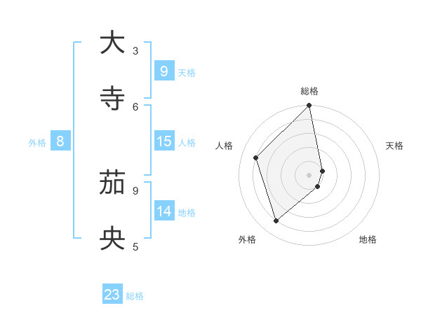 大寺 茄央さんの総格は23画の5点!