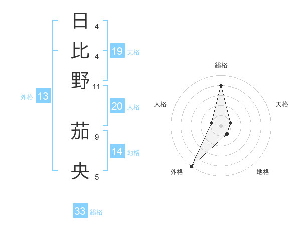 日比野 茄央さんの総格は33画の4点!
