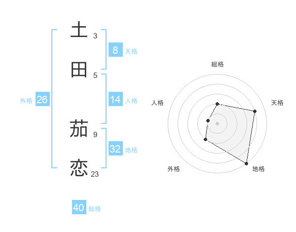 土田 茄恋さんを姓名の画数から五運を鑑定