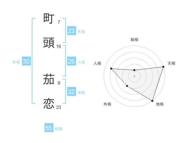 町頭 茄恋さんを姓名の画数から五運を鑑定