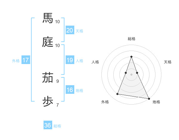 馬庭 茄歩さんを姓名の画数から五運を鑑定