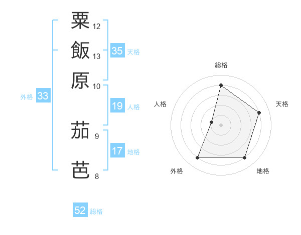 粟飯原 茄芭さんを姓名の画数から五運を鑑定