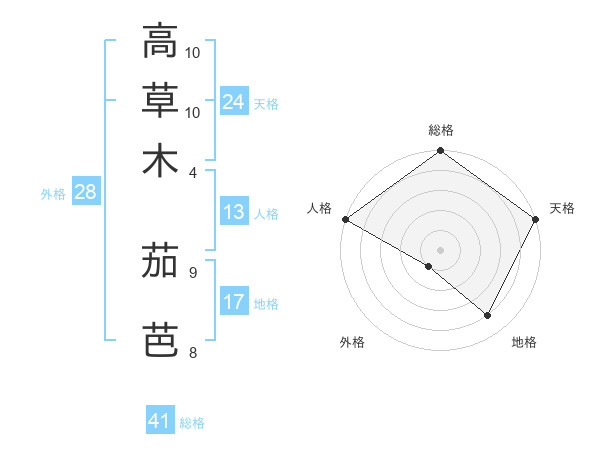 高草木 茄芭さんを姓名の画数から五運を鑑定