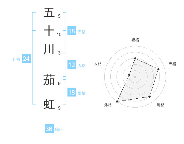 五十川 茄虹さんを姓名の画数から五運を鑑定