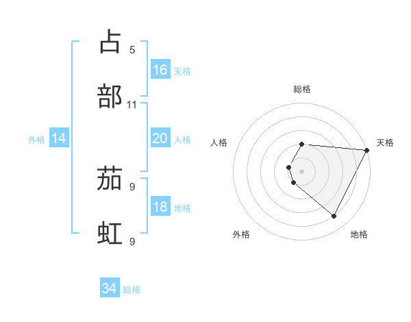 占部 茄虹さんの天格は16画の5点!
