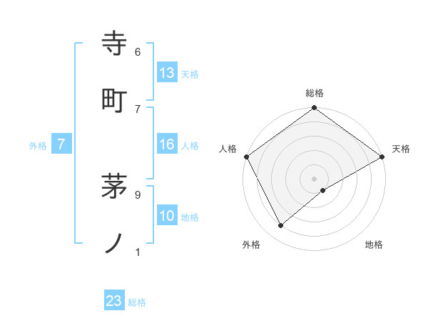 寺町 茅ノさんの天格は13画の5点!