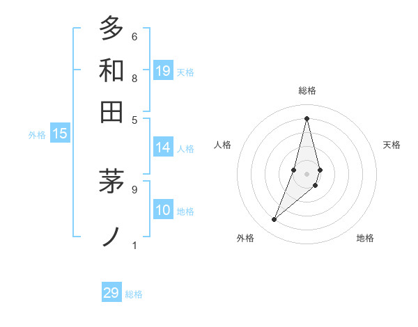 多和田 茅ノさんを姓名の画数から五運を鑑定
