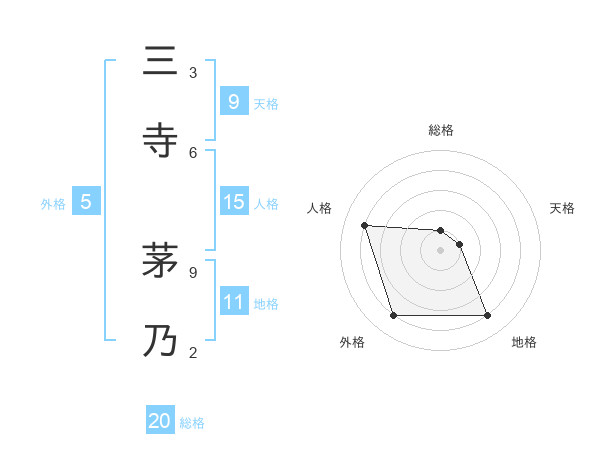 三寺 茅乃さんを姓名の画数から五運を鑑定