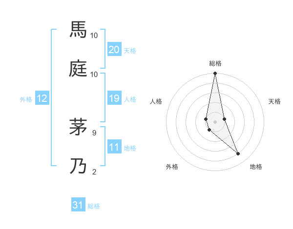馬庭 茅乃さんを姓名の画数から五運を鑑定