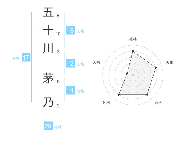 五十川 茅乃さんを姓名の画数から五運を鑑定