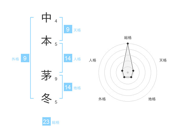 中本 茅冬さんを姓名の画数から五運を鑑定