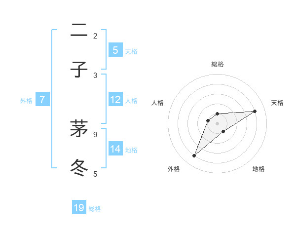二子 茅冬さんの天格は5画の4点!