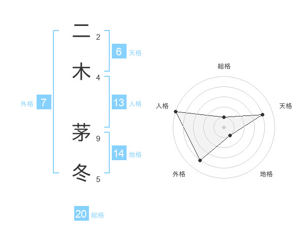 二木 茅冬さんを姓名の画数から五運を鑑定