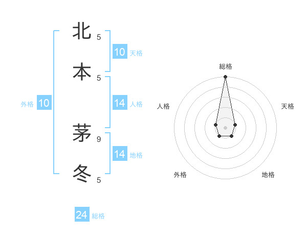 北本 茅冬さんを姓名の画数から五運を鑑定