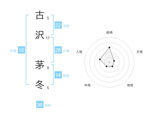 古沢 茅冬さんを姓名の画数から五運を鑑定