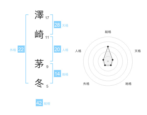 澤崎 茅冬さんを姓名の画数から五運を鑑定