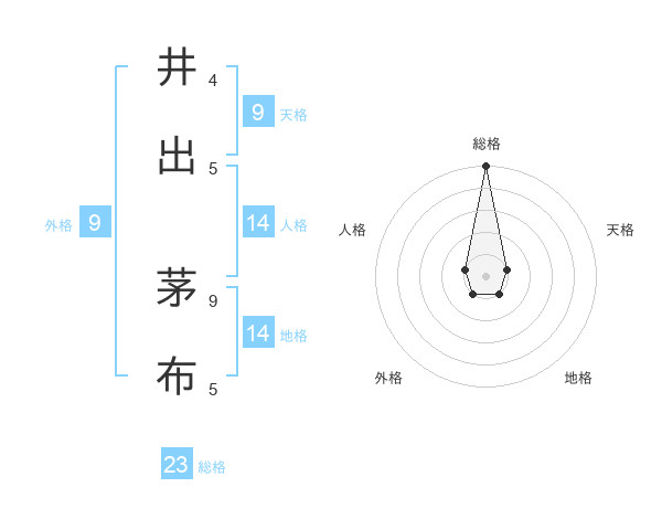 井出 茅布さんの総格は23画の5点!