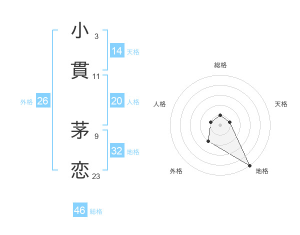 小貫 茅恋さんを姓名の画数から五運を鑑定