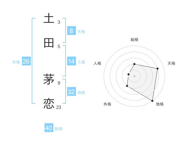 土田 茅恋さんを姓名の画数から五運を鑑定