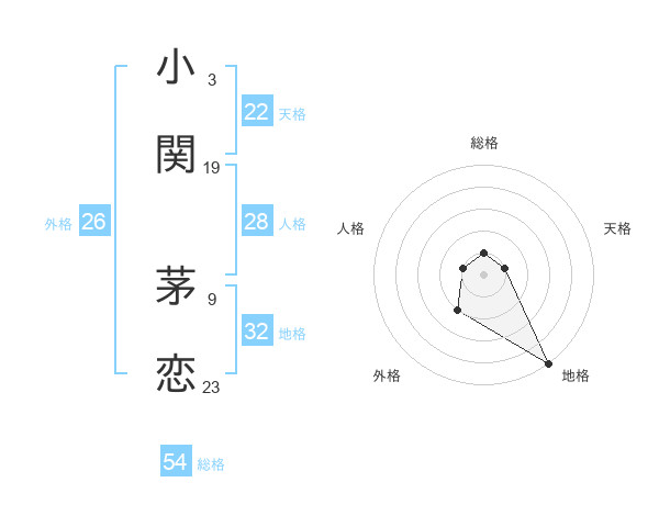 小関 茅恋さんを姓名の画数から五運を鑑定