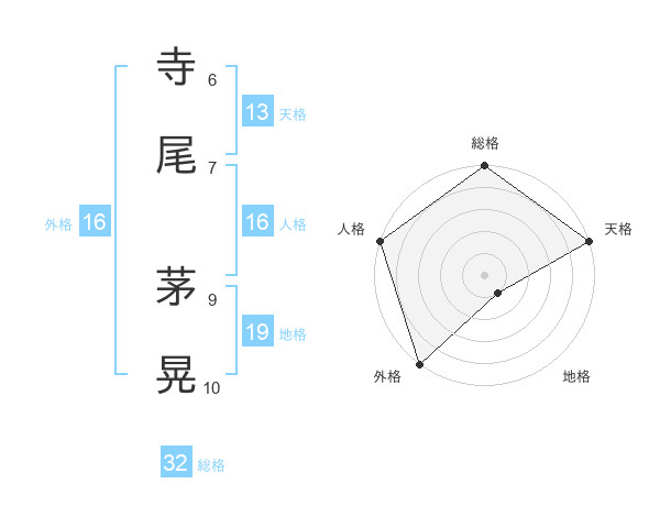 寺尾 茅晃さんを姓名の画数から五運を鑑定