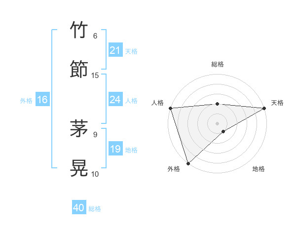 竹節 茅晃さんを姓名の画数から五運を鑑定