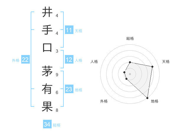 井手口 茅有果さんを姓名の画数から五運を鑑定