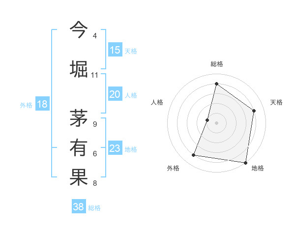 今堀 茅有果さんの総格は38画の4点