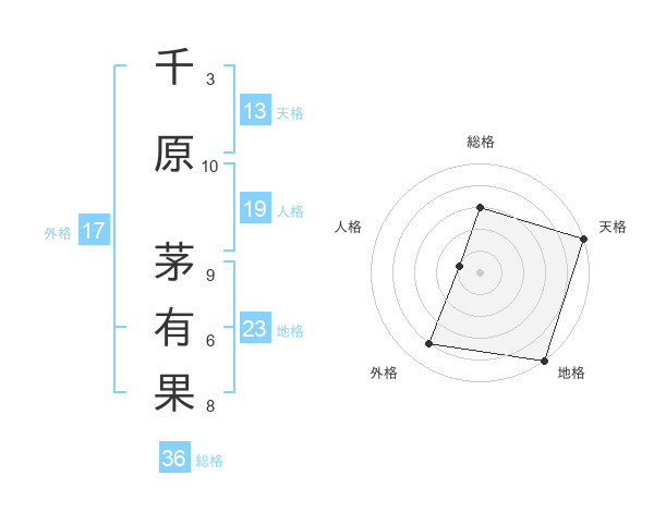 千原 茅有果さんを姓名の画数から五運を鑑定